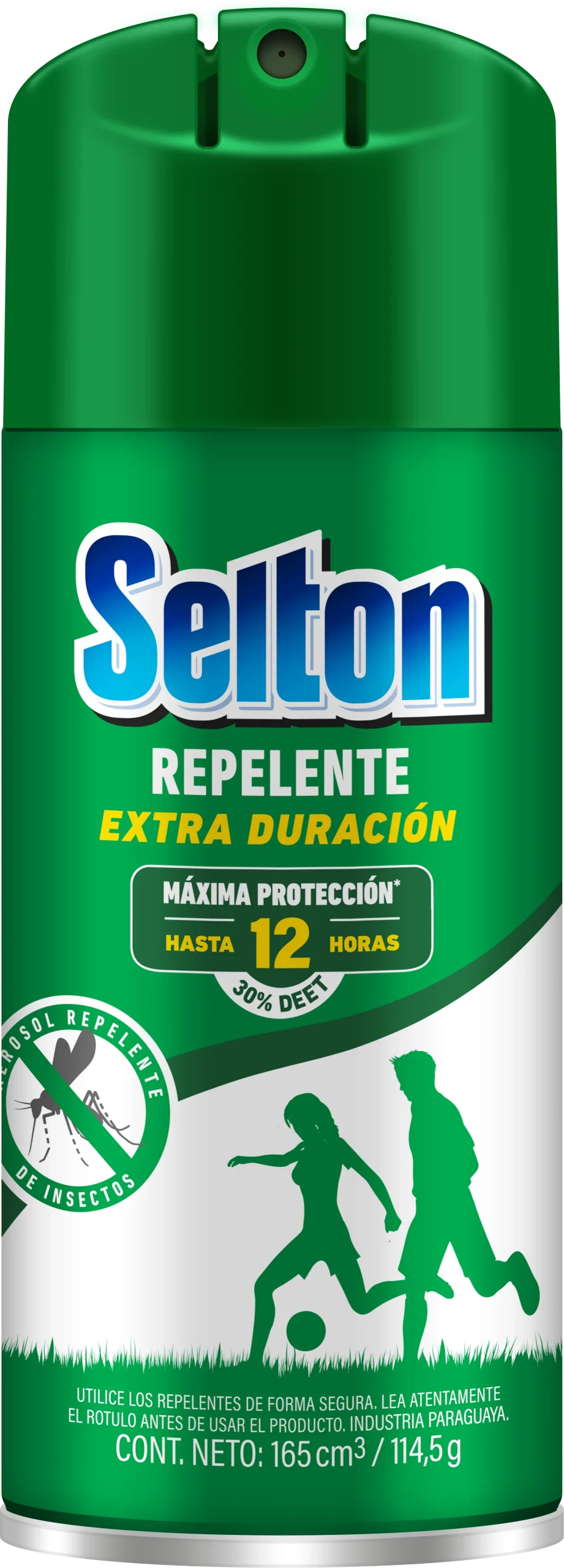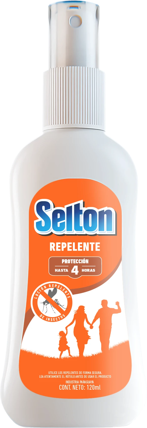 El Repelente Selton Extra Duración brinda hasta 12 horas de protección contra insectos, incluido el mosquito transmisor del dengue. Con aroma suave y no invasivo, su fórmula es de rápida absorción, no grasa, no pegajosa y no mancha la ropa, ideal para actividades al aire libre.